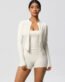 3pcs Women Sports Yoga Set - Sexy U-Neck Sleeveless Top, High Neck Thumbhole Long Sleeve Jacket, Skinn y Tight Shorts